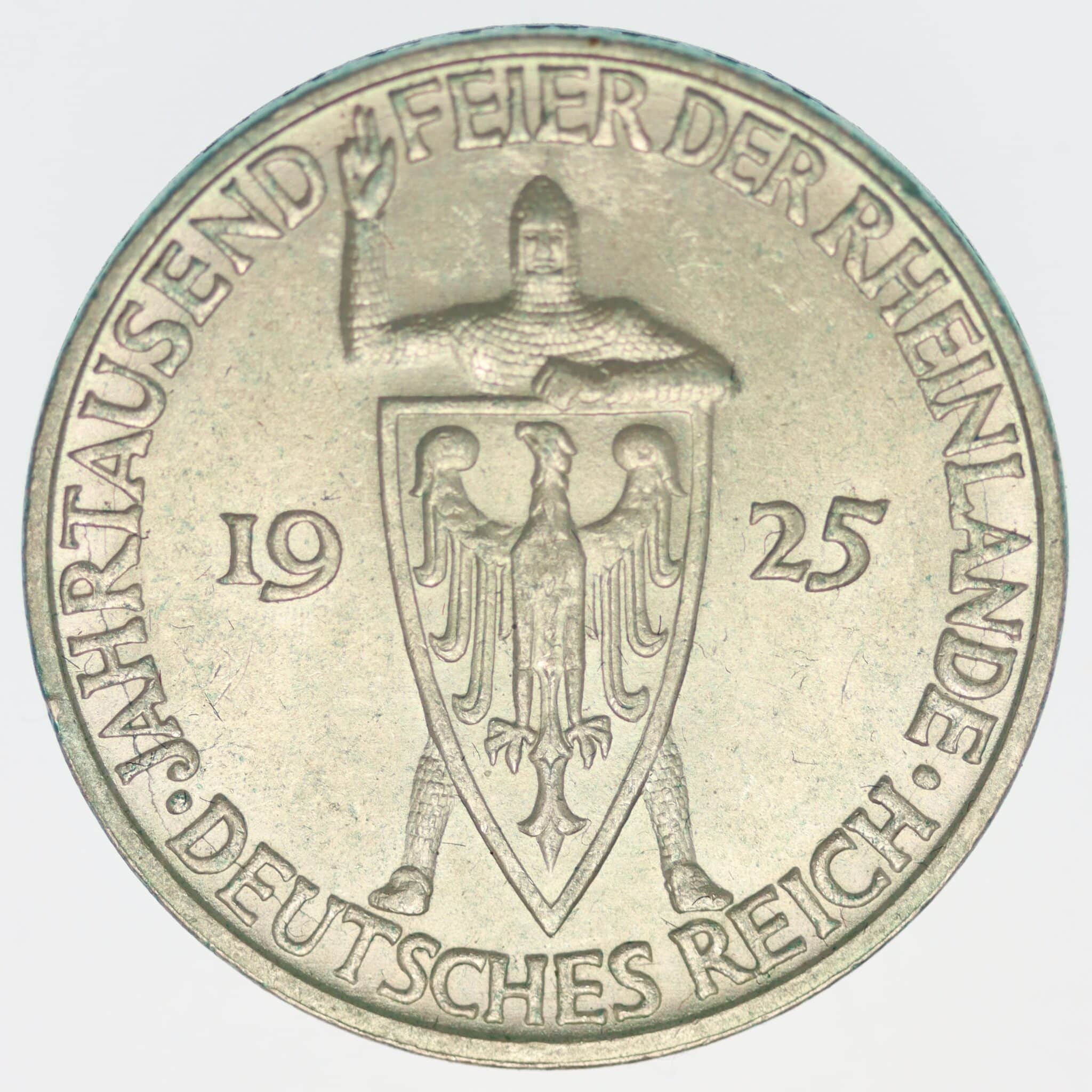 Weimarer Republik 3 Reichsmark 1925 D Rheinlande